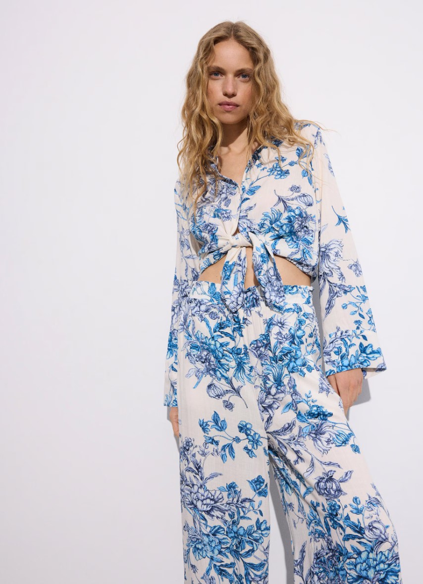 Pantalonii cu imprimeu floral sunt acei pantaloni care iti adauga imediat un strop de culoare si veselie in tinuta. Sunt perfecti pentru zilele in care vrei sa te simti feminina si plina de viata. Asorteaza-i cu topuri uni, sandale cu talpa plata si o poseta din rafie, pentru a lasa imprimeul sa fie punctul central al tinutei tale.