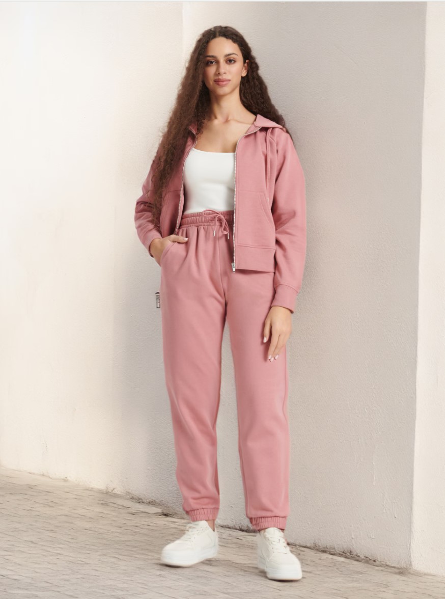 Pentru un look sportiv si trendy, pantalonii jogger sunt alegerea perfecta. Acestia sunt confortabili si versatili, putand fi purtati atat la sala, cat si in tinutele casual de zi cu zi. Combina-i cu un tricou oversized si pantofi sport, vei obtine un look cool si relaxat. Eu iti propun sa incerci aceasta pereche de joggers atat datorita culorii feminine, cat si datorita pretului extrem de avantajos!
