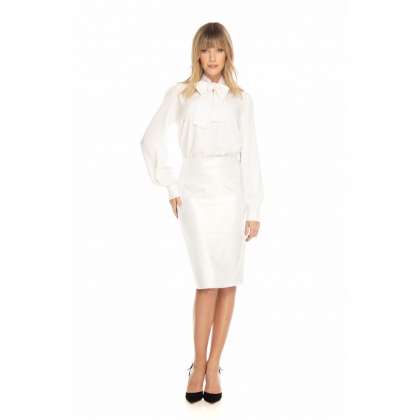 Fie ca mergi la birou sau iesi in oras – la o intalnire sau cu prietenele – piesele albe sunt epitomul verii, iar partea buna e ca nu se vor demoda niciodata. Mai ales daca vorbim despre o fusta dreapta, minimalista. Aceasta este din piele ecologica, asa ca se asaza perfect pe formele tale, conferindu-ti un aer elegant. O poti purta cu un top nude satinat sau chiar cu un tricou, in functie de ocazie.