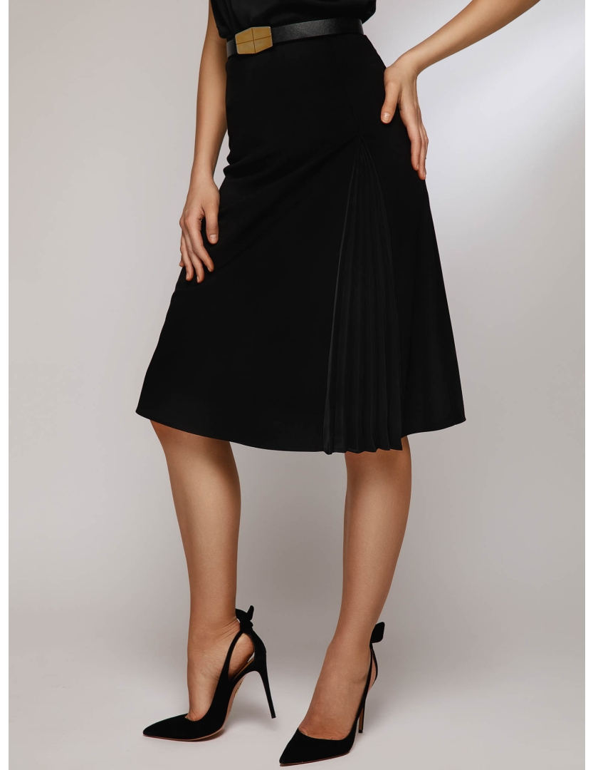 Pliseurile sunt la moda si raman un detaliu elegant si feminin. Imi place acest model de fusta in A cu insertie de pliseu – este ceva diferit, dar ramane eleganta si atemporala. Imi place simplitatea pe care o emana, desi este un model inovator.