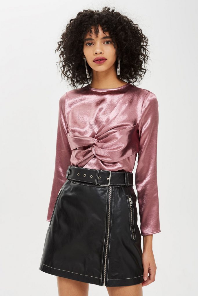 O bluza din satin drapat poate fi o optiune potrivita pentru seara sau chiar pentru club, daca o porti cu o fusta scurta din piele. Dupa cum spuneam, combinatia de materiale contrastante, cum e satinul si pielea, va conferi un efect echilibrat tinutei tale.