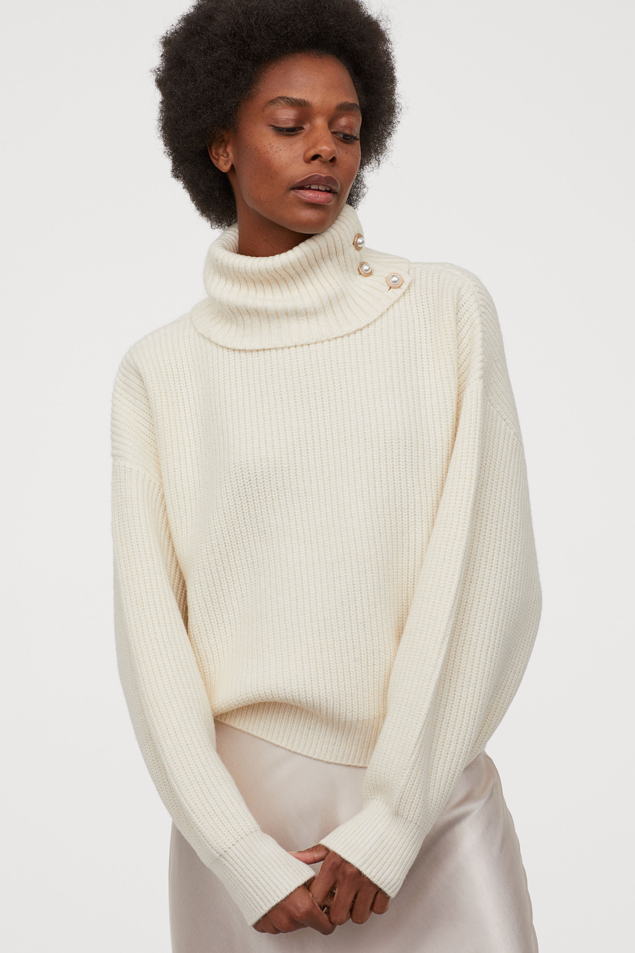 Puloverul cu guler e definitia momentelor relaxante in care te cuibaresti pe canapea si savurezi un ceai bun. Ai nevoie de unul intr-o culoare neutra, care sa se potriveasca cu orice alta piesa din garderoba ta. Jeansii nu sunt singura optiune – poate fi purtat chiar si cu piese satinate feminine.