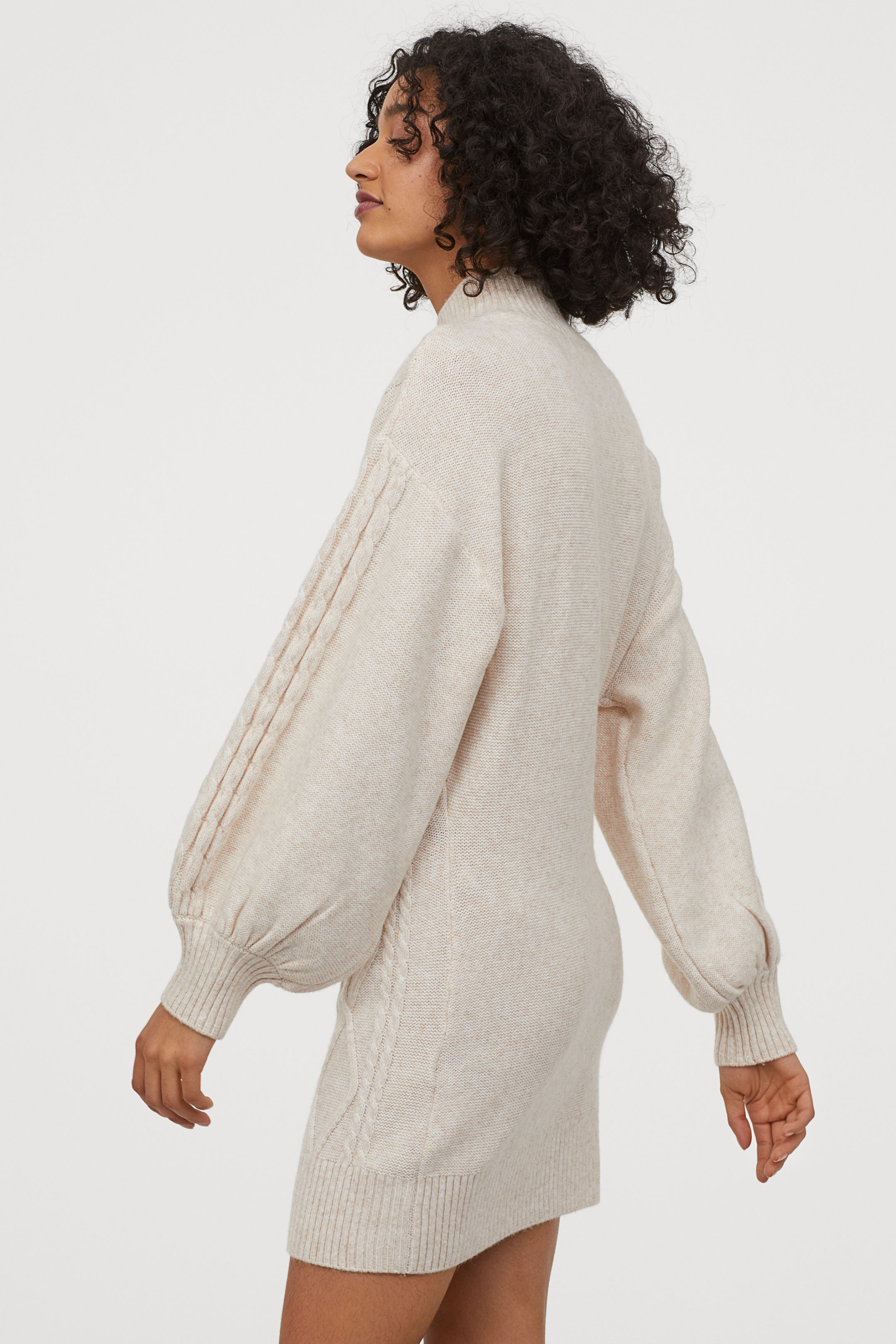 Manecile bufante au fost si vor fi mereu foarte chic si feminine, iar vestea buna e ca se preteaza la orice material. Aceasta rochie tip pulover, intr-o nuanta vanilata, este comoda si calduroasa, perfecta pentru zilele de birou. Poart-o cu cizme lungi in nuante neutre.