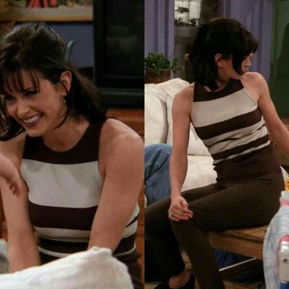 Stilul Monicai este foarte anii nouazeci (duh), iar aceasta tinuta retro chic este mai mult decat potrivita si pentru zilele noastre, cand deja faimosii mom jeans s-au transformat intr-o piesa esentiala in orice garderoba feminina.