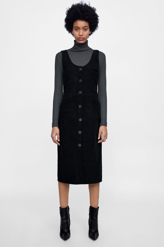 Acest stil de rochie, cu nasturi in fata, purtata peste o bluza subtire, cu maneca lunga, e perfecta pentru tinute de weekend, fie ca mergi la brunch cu prietenele sau la o plimbare cu iubitul.
