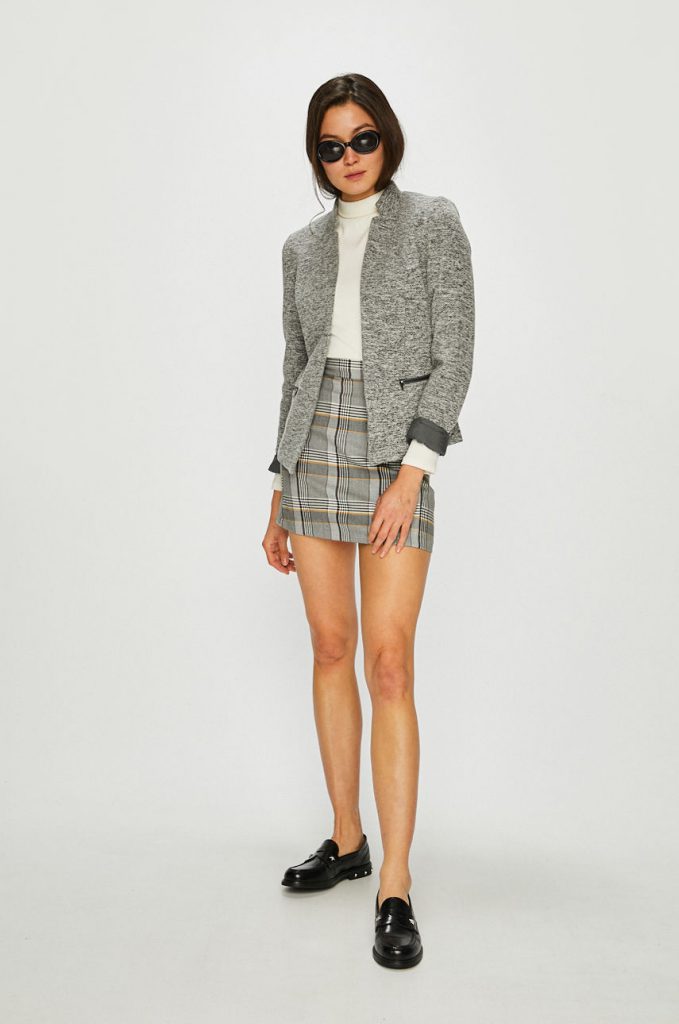 Imprimeul in carouri a revenit la moda de cateva sezoane, amintindu-mi de era Clueless, iar combinatia facuta de Rachel, cu puloverul alb din mohair, este cat se poate de potrivita. Atentie: sosetele pana la genunchi sunt optionale!