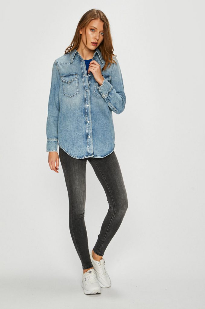 Purtata cu un maieu simplu, alb, si o fusta imprimata, lunga, camasa din denim este una dintre cele mai versatile piese vestimentare pe care o poti avea in garderoba.