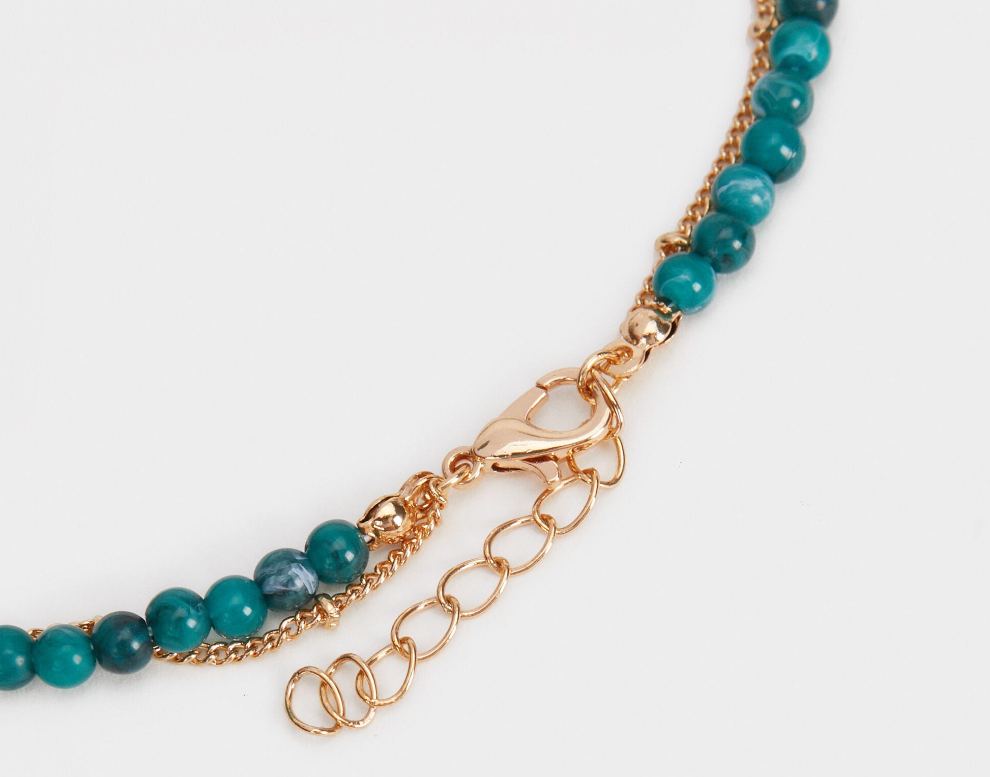 Bratara de glezna din perle este un mix curajos de clasic si avangardist. La fel de chic este si anklet-ul din multe siraguri, vizibil pe glezna.