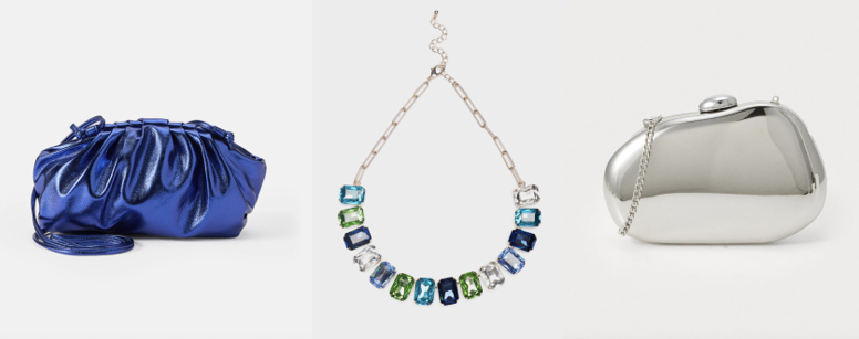 Even&Odd Geanta crossbody – blue metallic 119,00 lei, Anna Field Colier 89,00 lei, Zign Geanta plic 139,00 lei