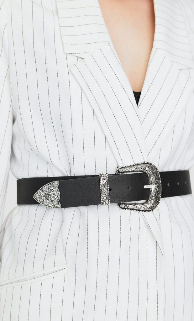 Totodata, daca adori outfiturile cu sacou, dar simti ca silueta iti este ascunsa, apealeaza din nou la cureaua de inspiratie western. Strange-o in talie si va schimba complet look-ul, per total.