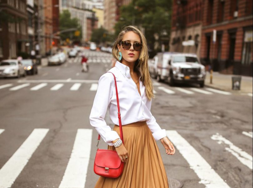 Da, poti purta fusta plisata cu camasa alba si in stil sport. Lasa camasa pe deasupra, prinde-o in centura, adauga sandale cu talpa joasa, o geanta de mana, ochelari de soare si esti gata sa tot bati orasul in lung si in lat!