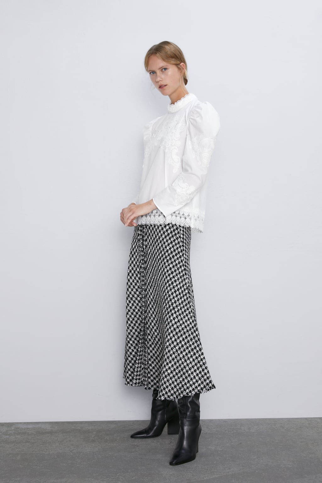 Se spune ca manecile bluzelor sau camasilor nu trebuie sa le depaseasca pe cele ale blazerului/paltonului. Insa uneori e interesant sa incalci regulile si sa le lasi sa iasa la lumina. Gaseste un top cu maneci foarte lungi, eventual involanate, si combina-l cu un blazer sau palton „cuminte”, in nuante neutre.