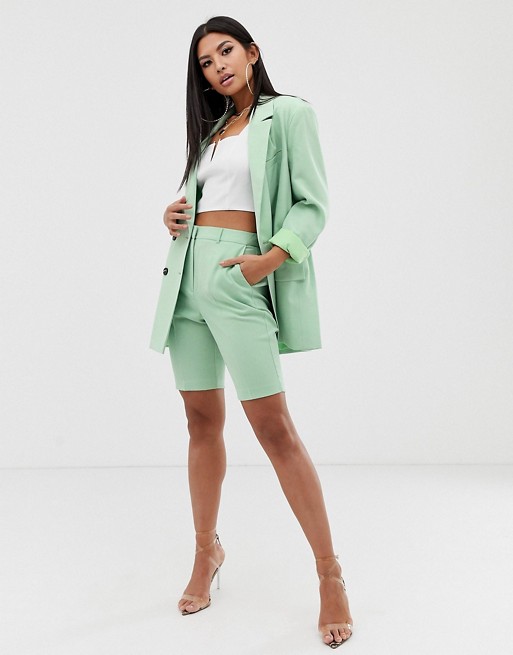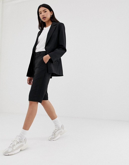 In culori tari sau in nuante pastelate, uni sau din tesaturi cu pattern interesant, costumele cu sacou si pantaloni scurti pana la genunchi, stil bermude, sunt piese-cheie pentru 2019.