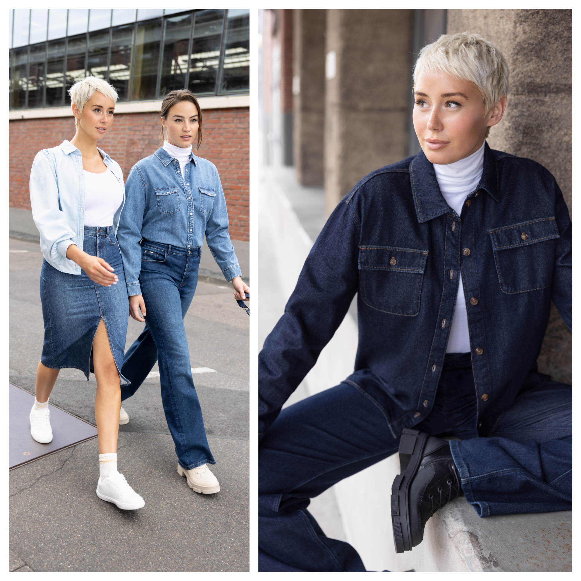 Pe langa jeansi, colectia mai include si alte articole din denim, precum salopete, fuste, veste, jachete si rochii, in nuante diverse de albastru. Foarte usor de asortat, atat cu alte materiale si texturi, dar si cu denim. Creeaza tinute sic, casual sau indraznete pentru un look cool intreaga zi.