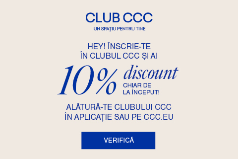 Nu esti inca membru al Clubului CCC? Nu ezita – descarca aplicatia mobila CCC sau inregistreaza-te pe ccc.eu/ro. Alatura-te comunitatii modei si obtine beneficii unice!