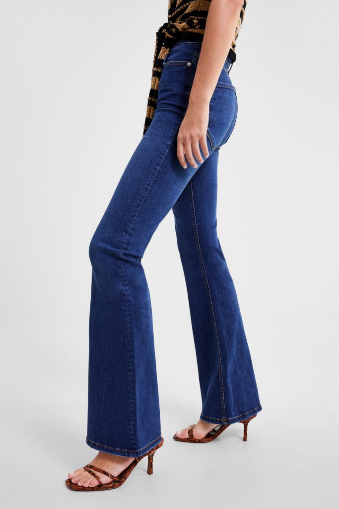 Desi, daca vorbim despre pantofi pentru vara 2019, pumps cu varful ascutit sunt piese-cheie, la blugii evazati amplu nu se potrivesc! Se vede doar varful iesind de sub jeans si pare ca o mica, pardon de comparatie, copita. Deloc flatant! Jeansii evazati au nevoie de un calapod masiv, mai gros.
