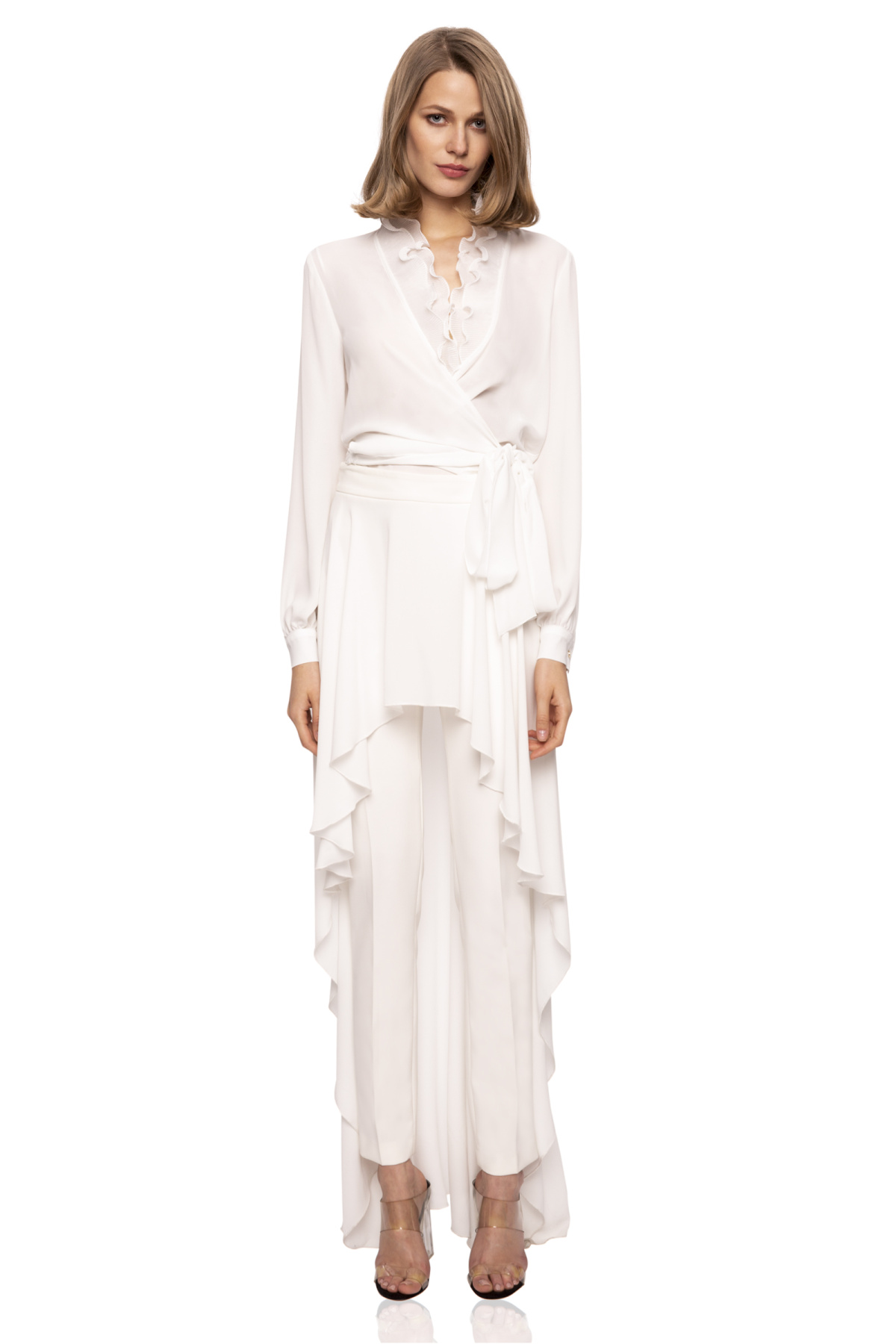 Fara doar si poate croieli ample, largi, evazate, chiar Palazzo pants. Si tot fara echivoc, ai nevoie de materiale pretioase: voal, dantela, satin, brocart. Sau de mici insertii bogate, precum paietele, dantela, broderia sau franjurile.