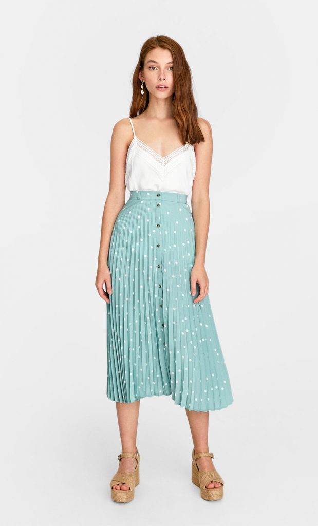 Fusta midi clos este potrivita pentru costumele de baie strapless si pentru cele cu accent pe talie
