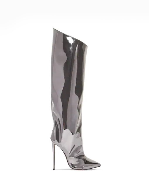 Inspira-te din colectiile Balmain si asorteaza cizme peste genunchi cu rochii si salopete scurte din textura metalica. Indraznesti sa porti o tinuta argintie din cap pana in picioare intr-o noapte de vara?