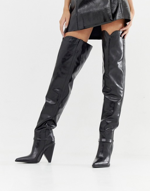 Cizmele lungi se potrivesc de minune si cu rochiile de blugi scurte!
