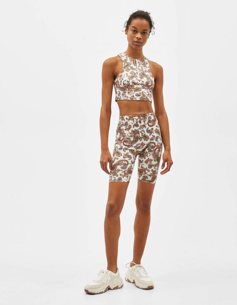 Daca vrei un outfit sport altfel, mizeaza pe colantii scurti! Se poarta mult acum! Si cand nu ii porti cu bustiere si tricouri la sala, poarta-i cu camasi albe, borsete in talie si pantofi cu toc, tot ca in anii 80!