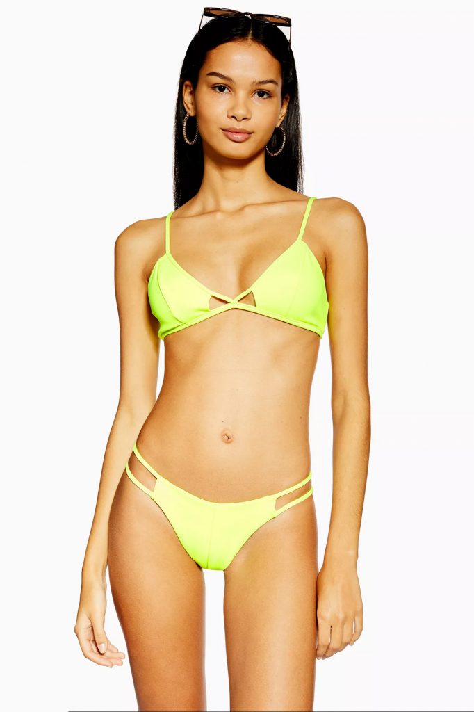 Ce costume de baie se poarta in 2019? Si cele galben-neon, care iti vor face bronzul sa iasa frumos in evidenta. In plus, cand el va pleca dupa cafea, te va gasi negresit, oricat de aglomerata ar fi plaja.