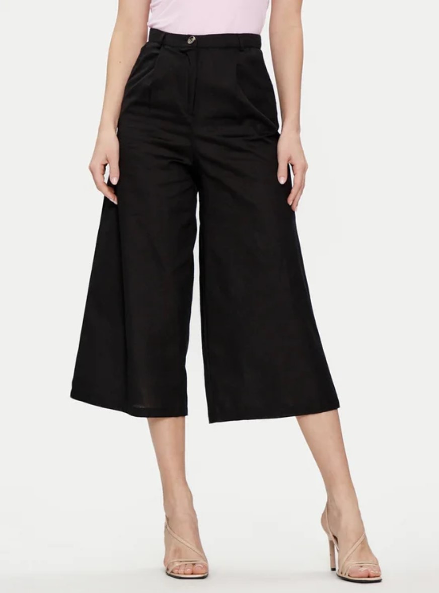 Pantalonii tip culotte reprezinta combinatia ideala intre pantaloni si fusta, oferind libertatea de miscare a pantalonilor, dar cu eleganta unei fuste. Sunt pantaloni vaporosi, care au o croiala lejera, ideali pentru acele zile in care iti doresti sa te simti relaxata, dar sa ai totusi o tinuta chic.