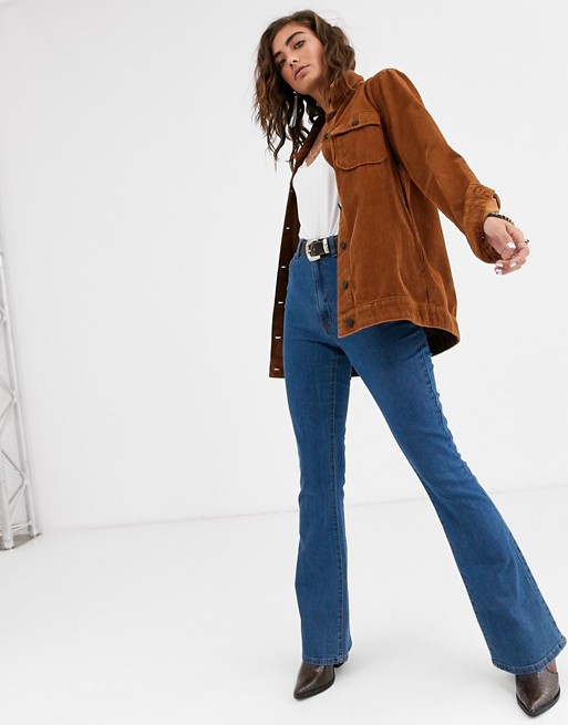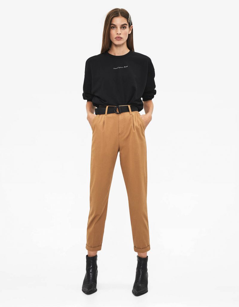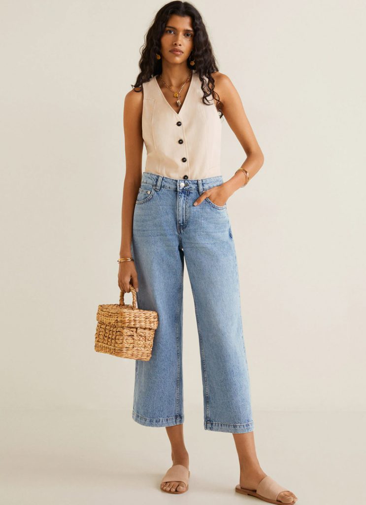 Jeansii evazati sunt un simbol al anilor ’70 si au revenit la moda. Asorteaza-i cu tricou alb si botine, iar pentru un efect extra-chic adauga un blazer.