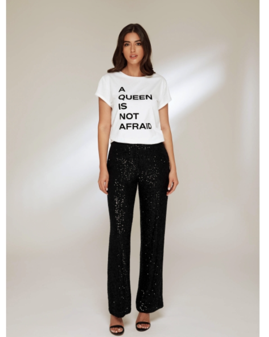 Dar vestile bune nu se opresc aici! Pantalonii negri din paiete pot fi purtati cu succes si pe timpul zilei, aceasta fiind partea mea preferata. Ador combinatiile neasteptate, cand piesele elegante sunt “domolite” cu ajutorul unor elemente mai casual. Iti recomand sa incerci acesti pantaloni alaturi de un pulover fin, de un tricou casual sau chiar alaturi de un hanorac. Vei ramane surprinsa de tinutele sofisticate pe care le vei obtine. Iar daca esti in cautare de si mai multa inspiratie pentru tinute de purtat in sezonul rece, iti recomand acest articol.
