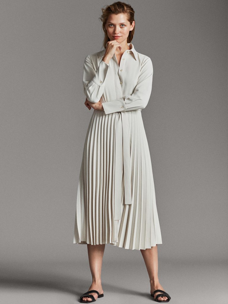 Stilul business-casual este bine reprezentat de rochii sobre, insa nu prea austere. Poate optezi pentru bleu pastel in loc de gri sau poate pentru detalii plisate, in locul croielii clasice.