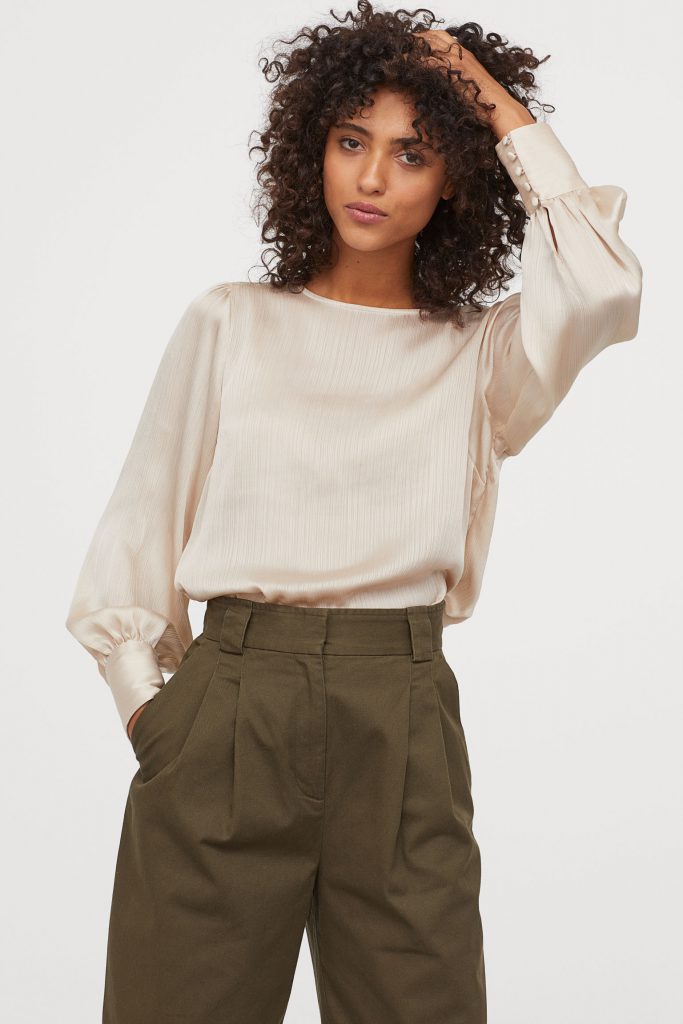Cum te imbraci business-casual cand vrei sa scapi de clasica si monotona camasa alba? Alegi un top bluzat, relaxat, cu croiala lejera. Astfel, fusta conica sau pantalonii la dunga nu vor mai arata atat de „serioase”!