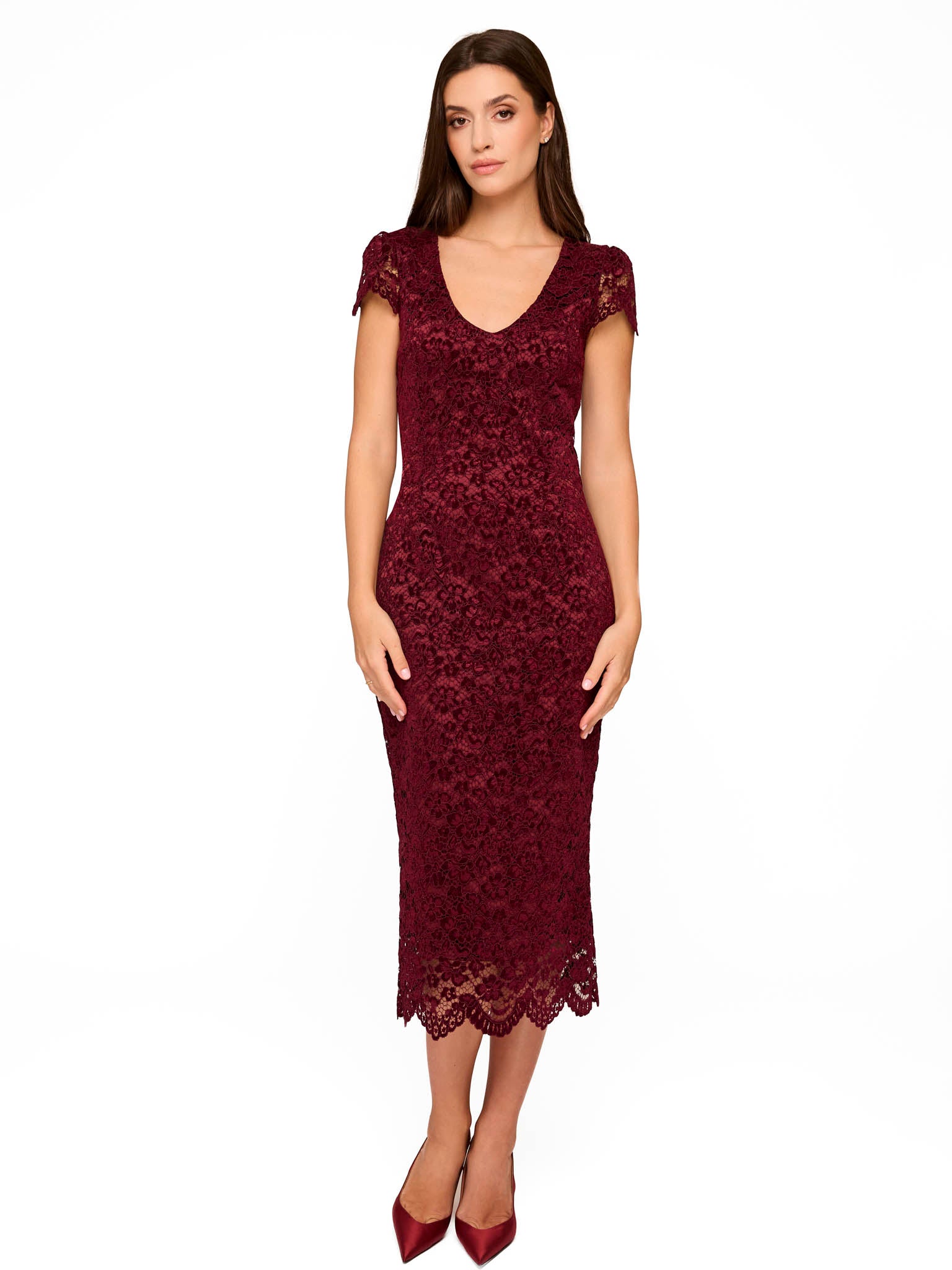 Rochie Clarisse din dantela merlot