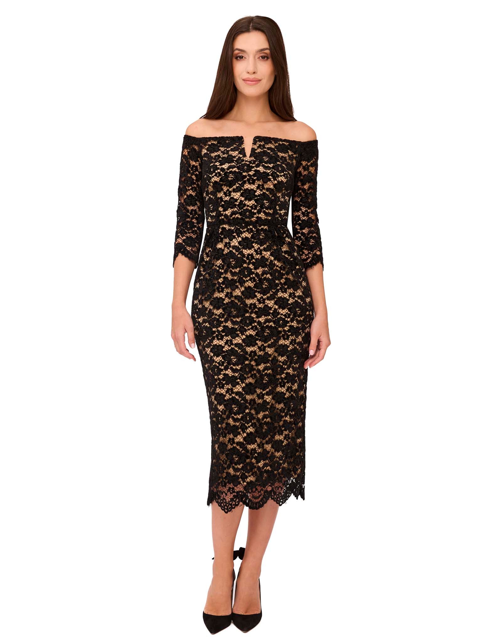 Lungimea midi, manecile trei sferturi si decupajul subtil din zona decolteului formeaza un ansamblu armonios, ce imbina feminitatea cu eleganta. Dantela fina ofera profunzime vizuala, iar transparentele controlate adauga o nota contemporana si rafinata.