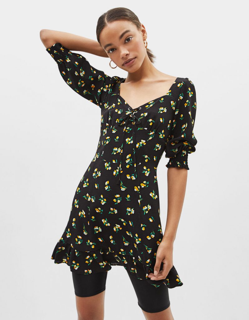 Este plin acest sezon de rochii cu maneci bufante, de la inspiratia victoriana pana la cea est-europeana, ce porneste de la costumele populare traditionale. Aceasta rochie este perfecta alaturi de cizme peste genunchi sau cowboy boots, cu geci din piele sau din denim, eventual cu cateva layere de tricotaje si coliere la gat. Insa poate fi purtata si cu bermude de fitness.