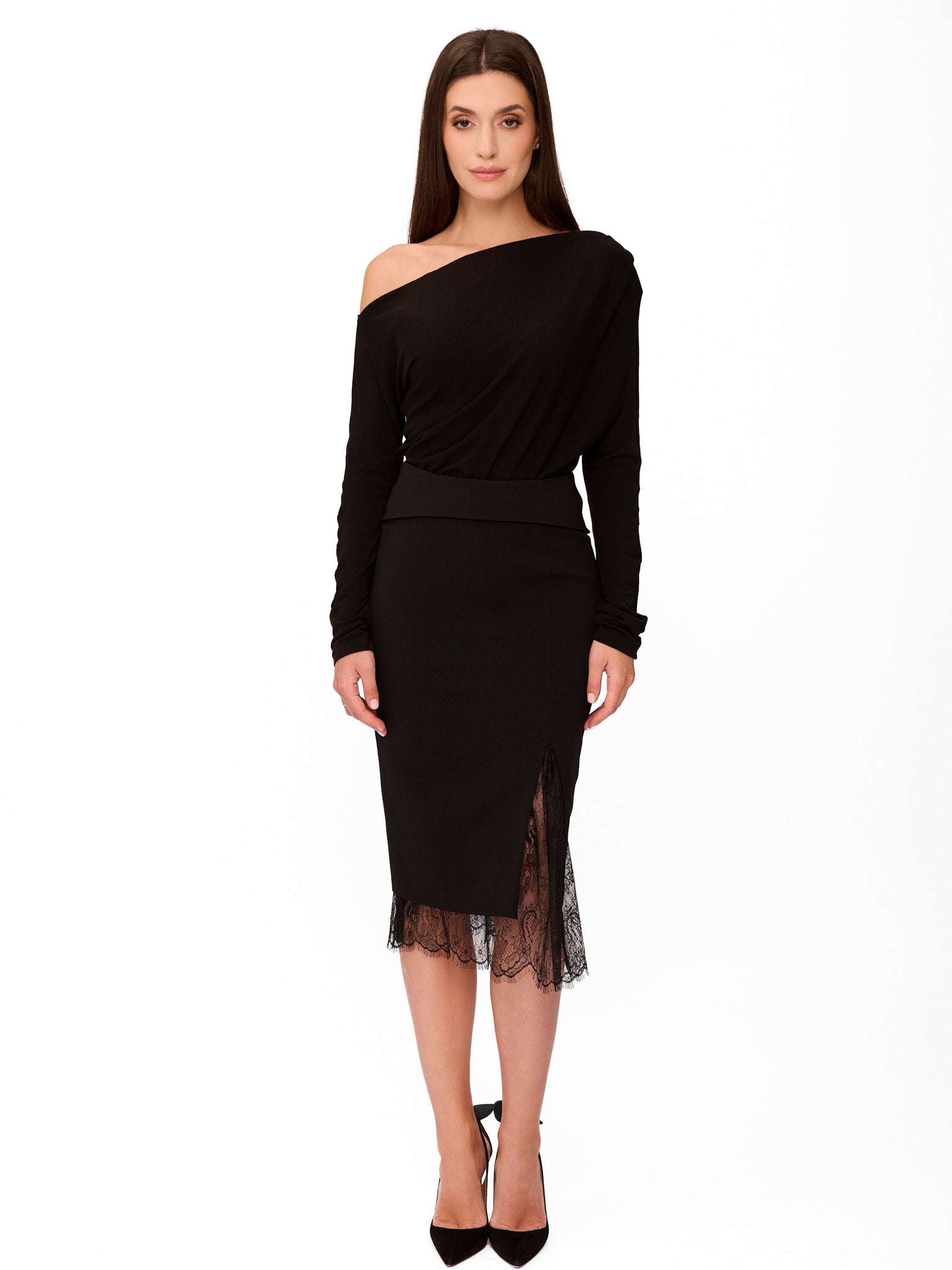 Fusta Carine cu insertii de dantela neagra