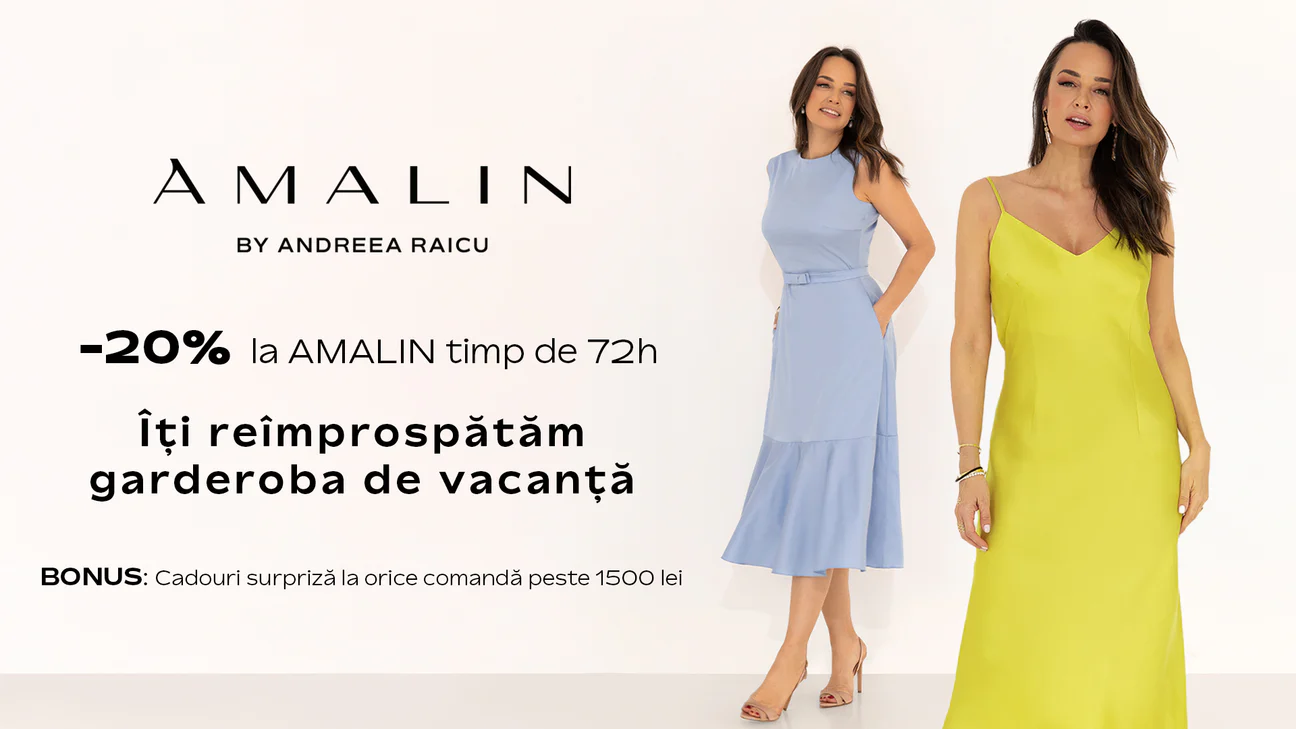 La piesele AMALIN vei gasi oferte tentante, ca sa ne bucuram de vara cum se cuvine. Ai reduceri la unele produse bestseller, dar si cadouri la achizitii de peste 1.500 de lei – in perioada 13-15 iunie.