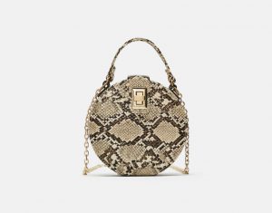 Zara geanta rotunda cu banduliera si animal print, 149,90 lei