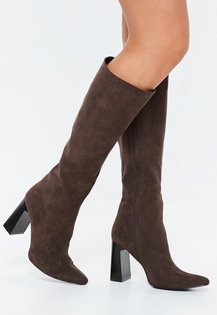 Brown calf tubular faux suede boots, 35 lire, reduse de la 50 lire, www.missguided.co.uk
