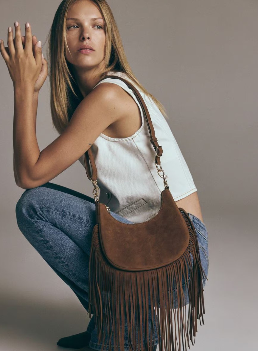 Franjurile revin in forta sezonul acesta, iar o geanta cu franjuri poate fi elementul statement de care ai nevoie. Alege una in culori clasice de toamna, cum ar fi burgundy, olive sau maro inchis, si asorteaz-o cu tinute simple pentru a-i permite sa fie in centrul atentiei. Acest element va adauga miscare si dinamism tinutelor tale, transformandu-te intr-o aparitie memorabila.