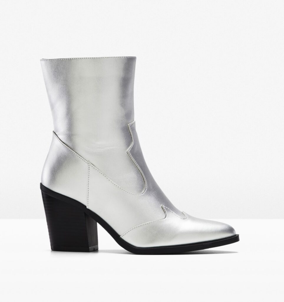 Asorteaza-ti tinuta cu o pereche de pantofi sau cizme cu toc, in tonuri de argintiu