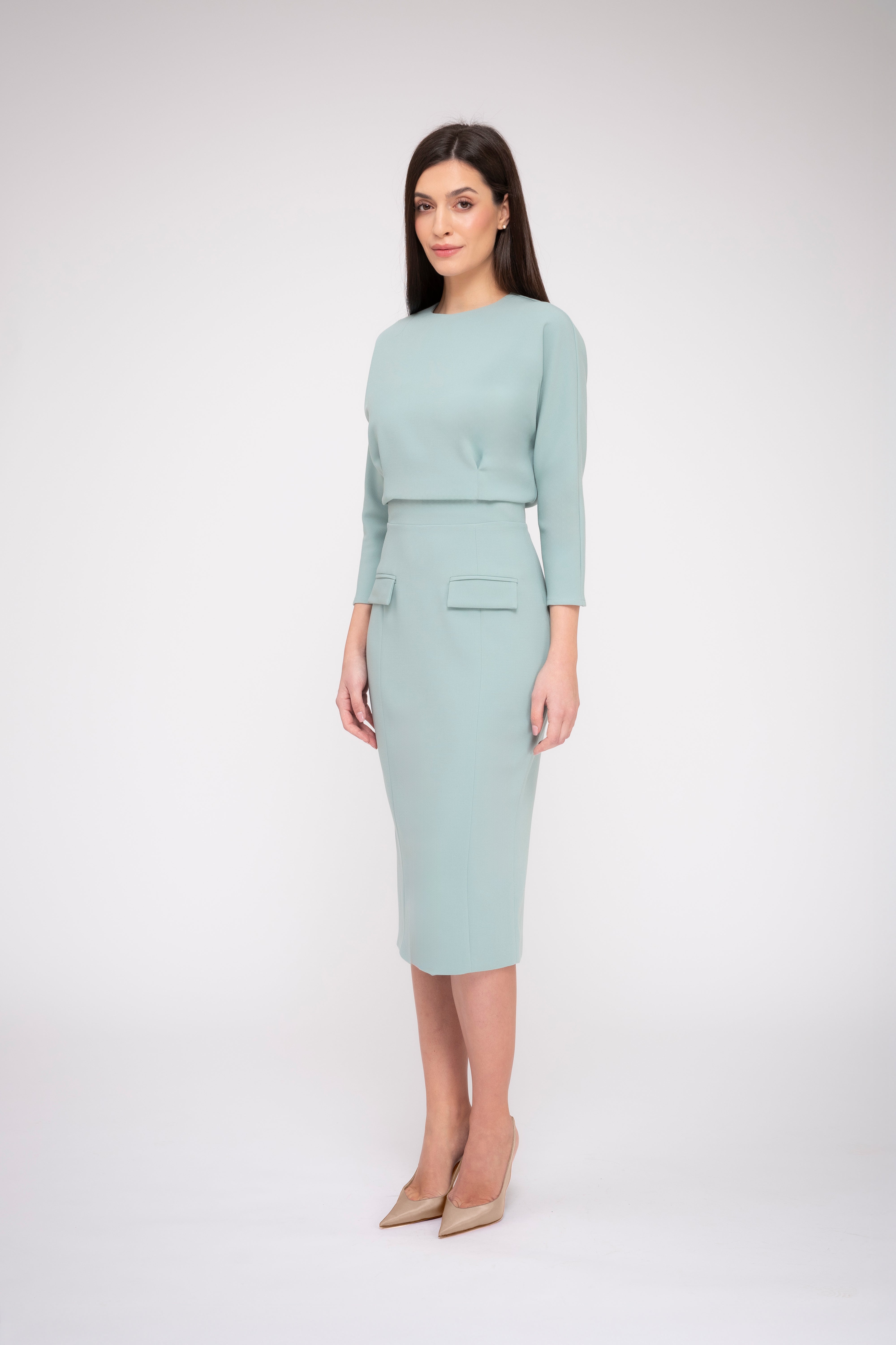 Cu o croiala dreapta, talie bine marcata si maneci 3/4, piesa aceasta vorbeste despre eleganta curata, fara artificii sau detalii inutile. Este genul de design care iti defineste silueta discret si sigur, fara sa forteze nimic.