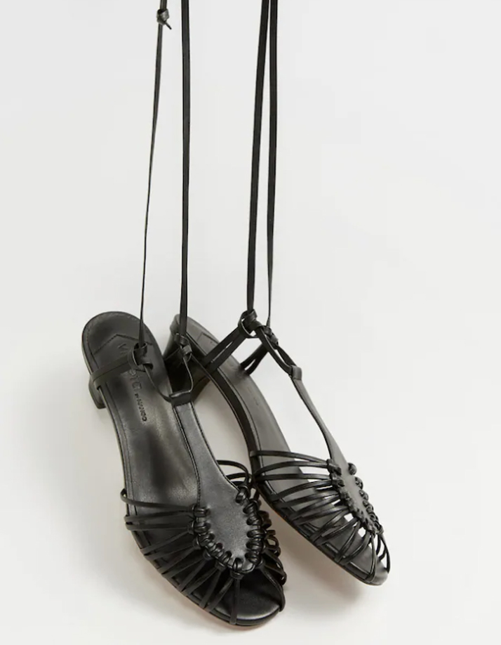 Sandale impletite cu tocul patratos