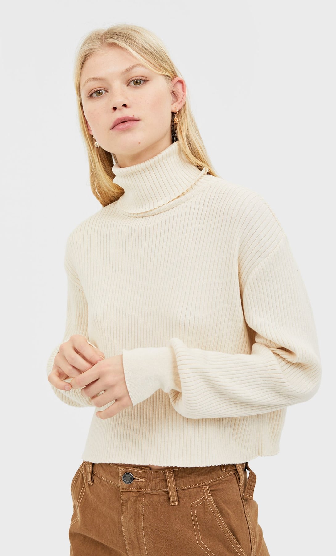 Pentru zilele relaxate sau cand ai treburi de rezolvat in oras, alege sa porti jeansi cu un pulover calduros cu guler, in nuante de vanilie. Modelul oversized este foarte trendy acum, iar combinatia cu jeansi arata foarte cool. O geanta tip postas neagra se va integra perfect in acest outfit simplu si de efect.