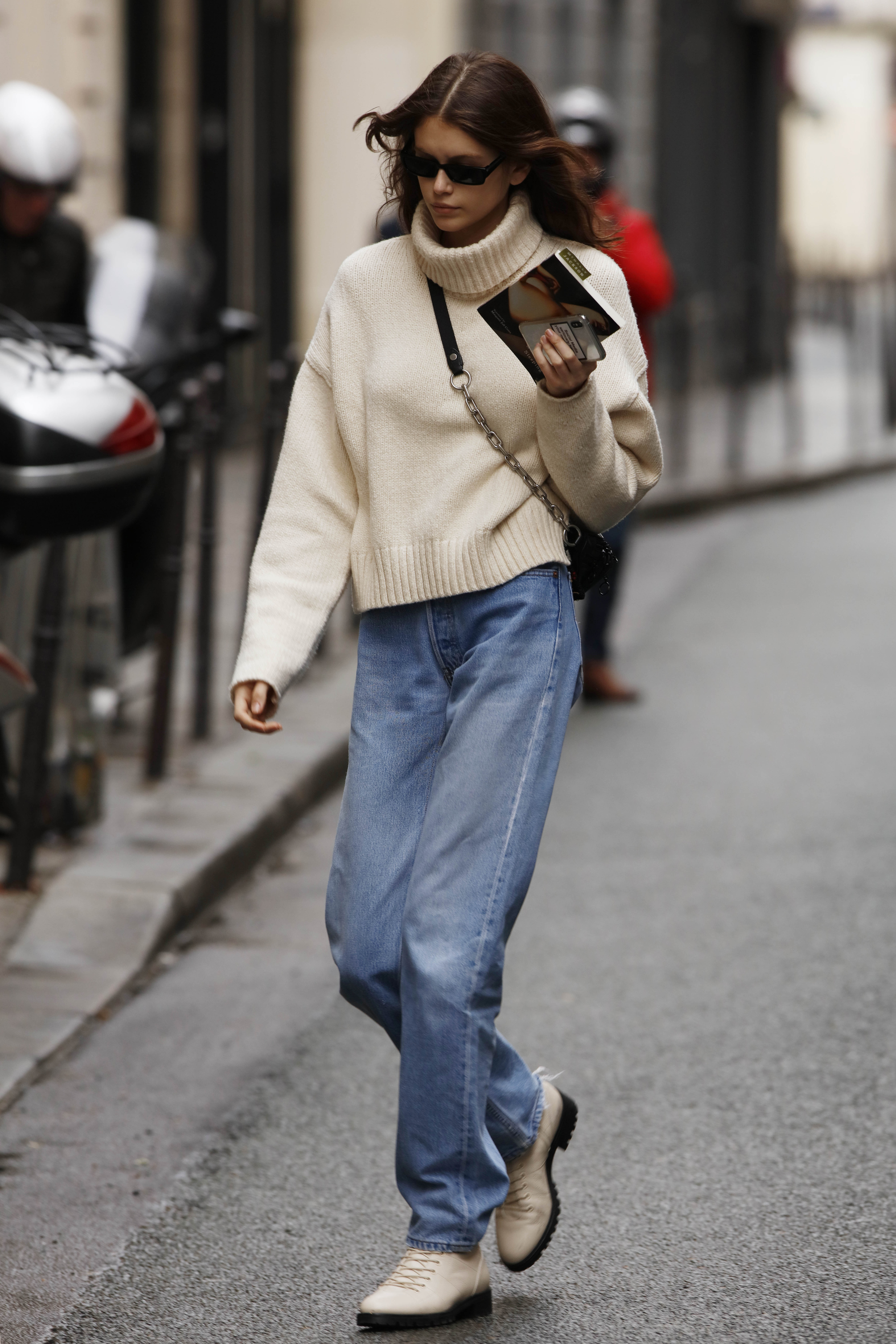 Iata cum combina Kaia Gerber blugii astfel incat sa obtina tinute cool – pentru strada, dar si pentru birou.