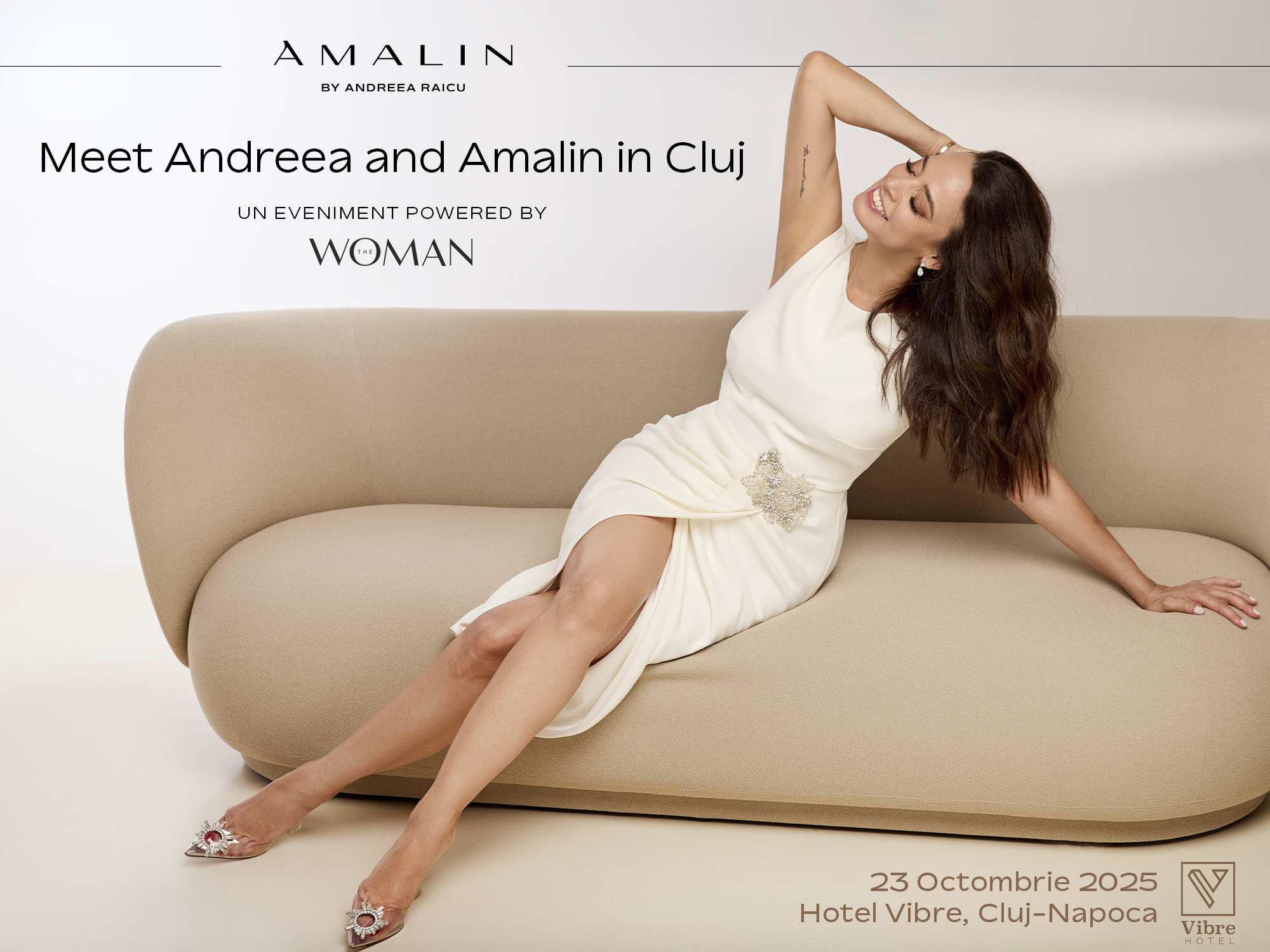 Pentru prima data, universul AMALIN ajunge la Cluj-Napoca, orasul care respira creativitate si care are un farmec aparte. Intr-un eveniment special gazduit de The Woman, pe 23 octombrie, la Hotel Vibre, esti invitata sa descoperi o lume in care stilul si echilibrul se intalnesc firesc, intr-o conversatie calda despre frumusete, inspiratie si incredere.