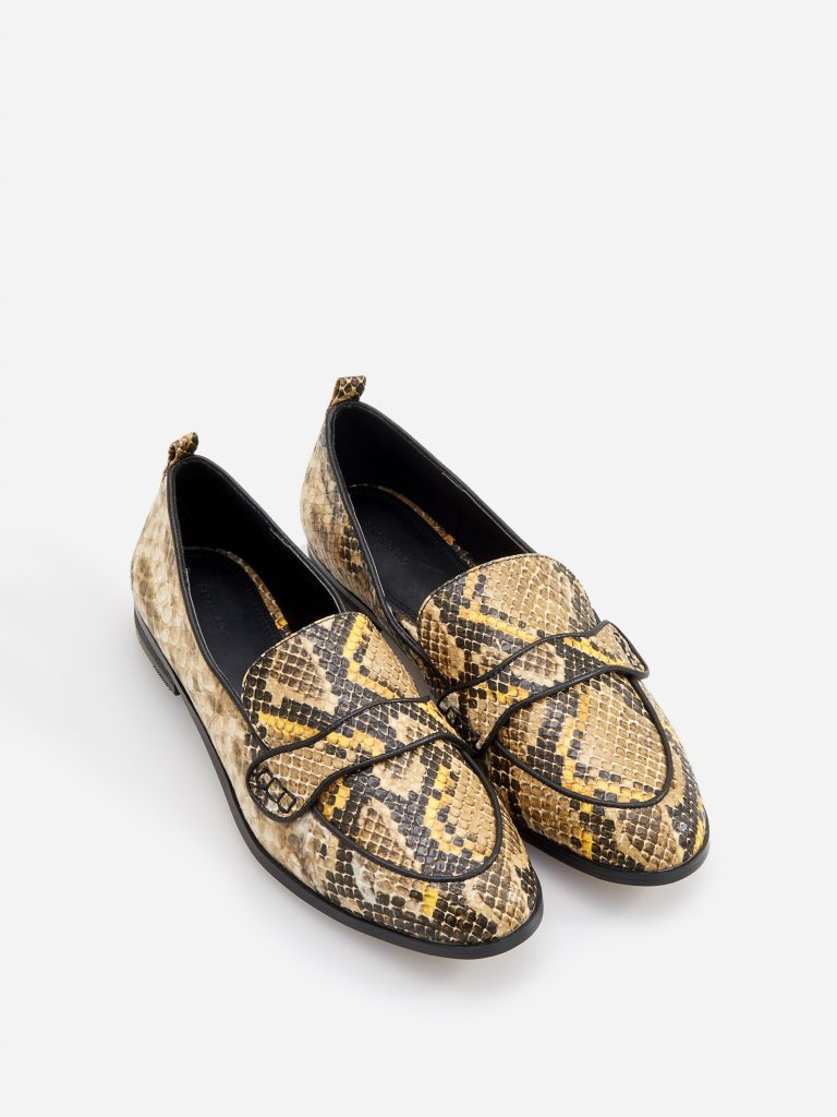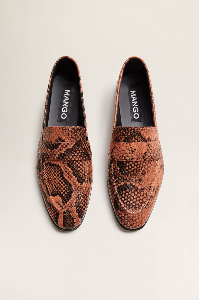 Mocasinii Zara cu print piton se potrivesc perfect cu tinuta ei casual.