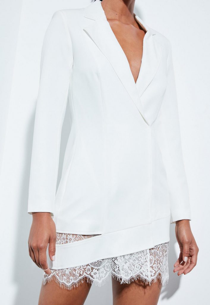 Peace + love white lace hem blazer dress, 70 lire, www.missguided.co.uk