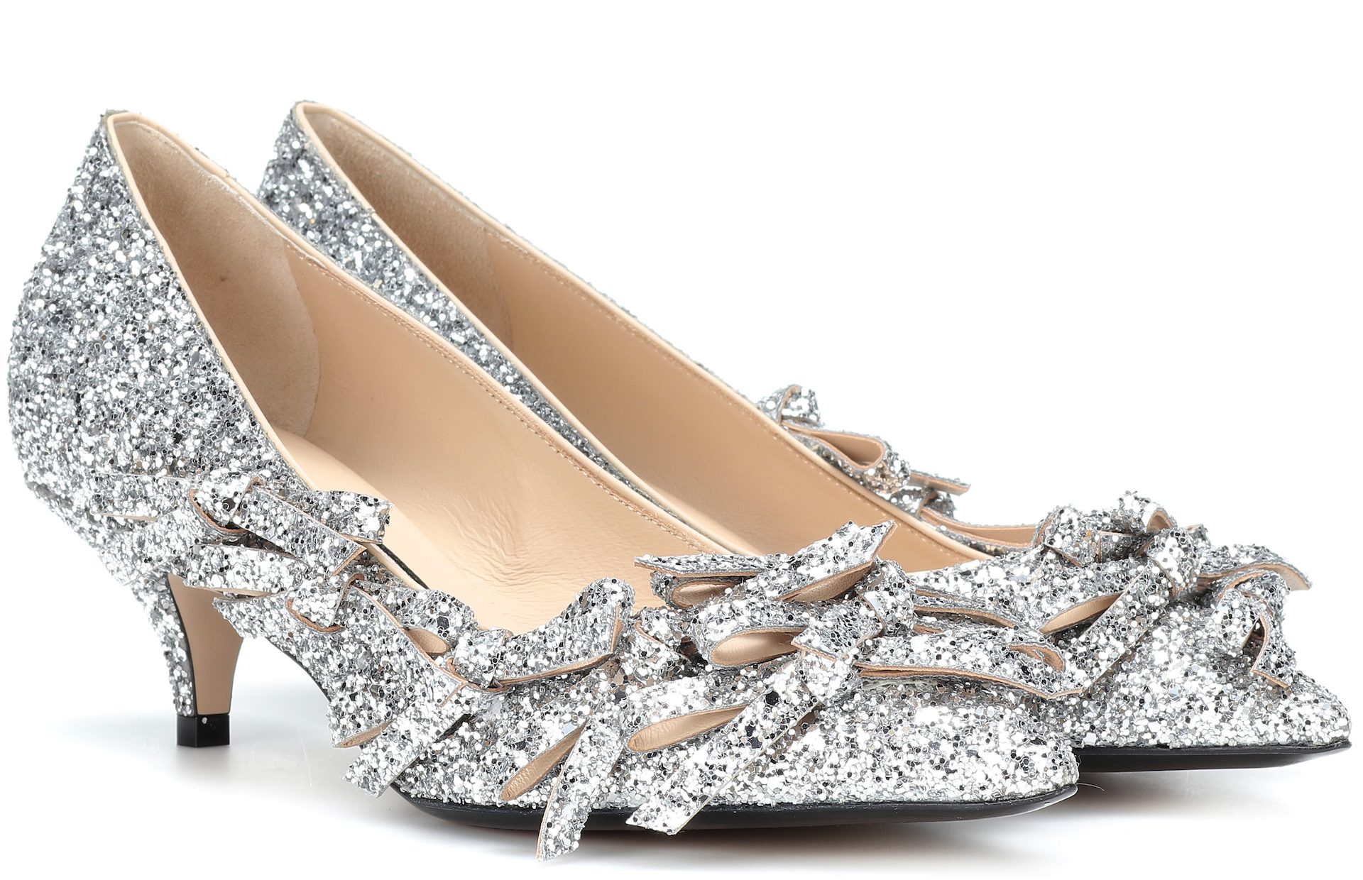 Eleganta pantofilor cu toc, dar cu mai mult confort la purtare: iti prezentam pantofii cu toc kitten. Iar textura cu glitter adauga, fara doar si poate, alaturi de funde, accente ce capteaza privirile.