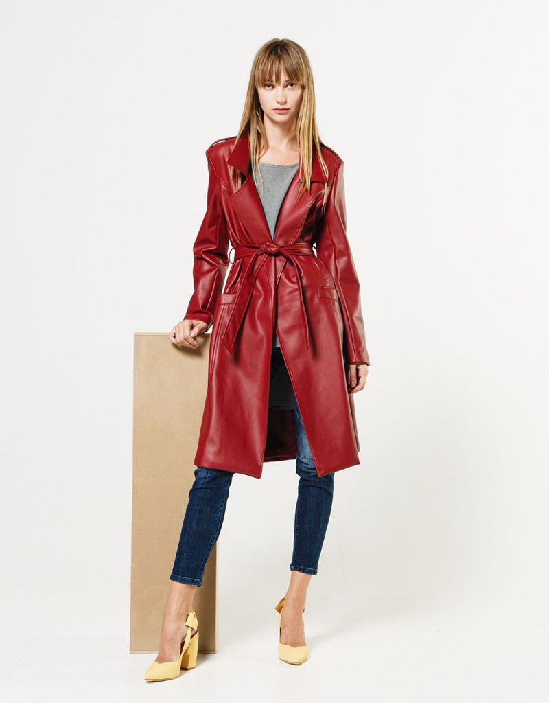 Palton din piele rosie