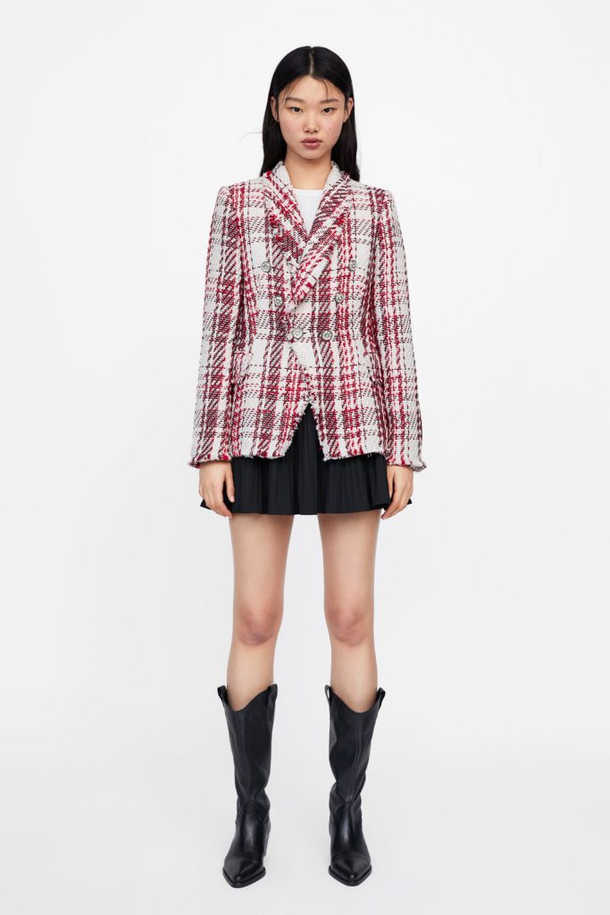 Zara jacheta din tweed cu nasturi tip bijuterii, 399,90 lei